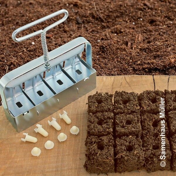 Mit der Ladbrooke Erdballenpresse Mini 4 können Sie Erdpresslinge für Ihre Pflanzenanzucht herstellen. Mit normaler Anzuchterde, die Sie lediglich etwas befeuchten, können Sie gleichzeitig vier Presslinge herstellen. So können Sie wie die Profis Ihre Anzucht organisieren und benötigen keine Anzuchttöpfe. Die Pflanzenanzucht wird nachhaltiger.