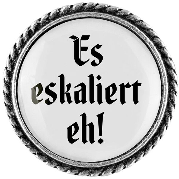 Egal ob zum feschen Dirndl, zur Lederhosen, an Weste und Hut oder einfach auch mal zu Jeans und T-Shirt: mit dem Gaudiknopf wird immer die richtige Botschaft gesendet. Ein zeitloser, fescher Trachtenanstecker für Jung und Alt, Mann und Frau, verziert mit dem originellen bayerischen Spruch "Es eskaliert eh". Ein Muss für alle, die das bayerische Lebensgefühl lieben und leben.