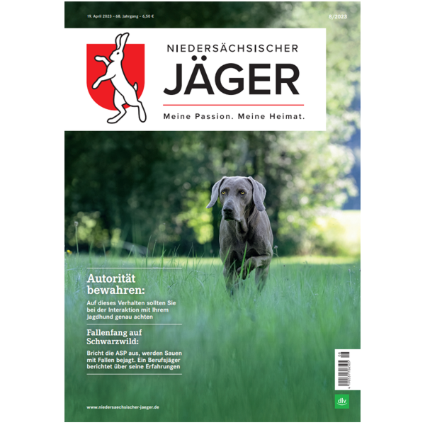 Bestellen Sie die Ausgabe 08/23 des führenden niedersächsischen Jagdmagazins mit dem Schwerpunktthema "Autorität bewahren: Auf dieses Verhalten sollten Sie bei der Interaktion mit Ihrem Jagdhund genau achten".