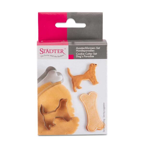 Mit diesem zweiteiligen Ausstecher-Set aus Edelstahl gibt’s zum Hund gleich den passenden Knochen dazu! Neben schönen Keksen und Plätzchen zum Verzieren lassen sich hiermit natürlich auch die perfekten Hundekekse in 8,5-9cm Größe backen. Zwei- und Vierbeiner kommen hiermit also gleich beide auf ihre süßen Überraschungen.